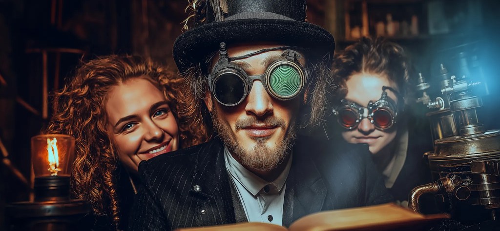 Mehr Info bei WikipediaSteampunk (von engl. „Dampf“ und „Punk“) ist ein kulturelles Phänomen, das sich immer größerer Beliebtheit erfreut. Moderne technische Mittel werden mit alten Materialien vor allem des viktorianischen Zeitalters kombiniert. So wird ein futuristischer Retro-Look erzeugt. Um es überspitzt zu formulieren: alter Schrott wird neu kombiniert. Entweder in dekorativer oder auch tatsächlich funktionaler Hinsicht. Heraus kommen Objekte zum Staunen.